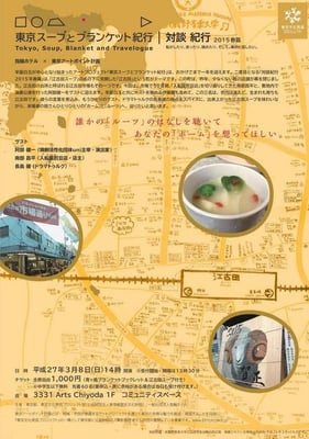 これは、東京文化発信プロジェクトの企画でもある、指輪ホテルの羊屋白玉さんが中心で進行しているアートプロジェクト「東京スープとブランケット紀行」の「対談紀行2015春篇」に、
