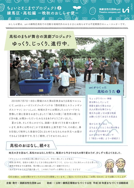 2017年、練馬区の高松地区にて第二弾を実施。取材や準備の様子は、下記「活動日誌」(note)よりご覧いただけます。